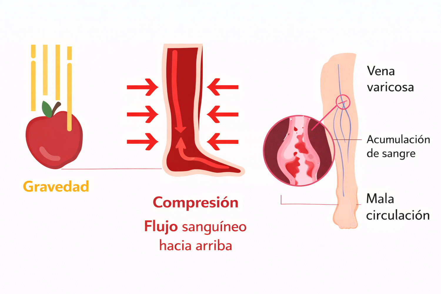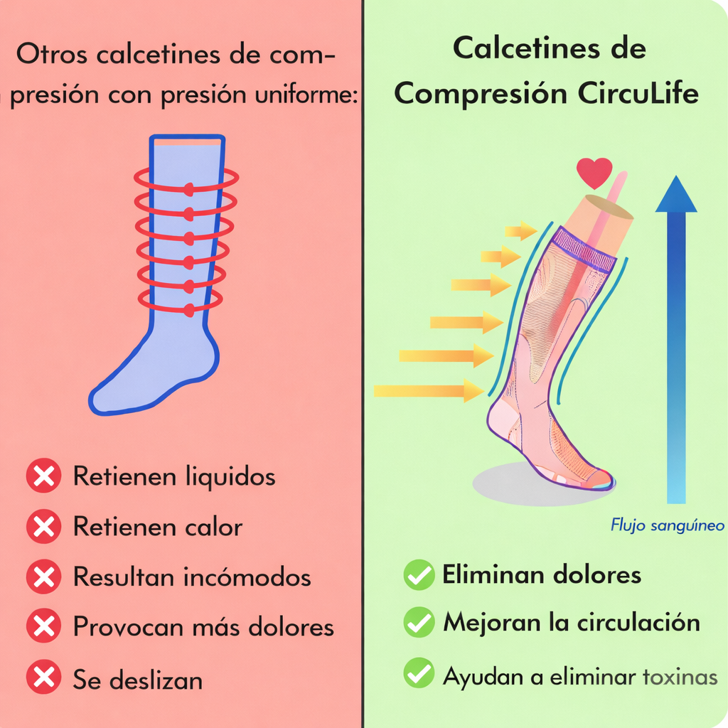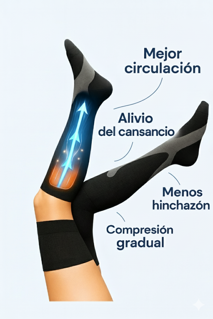 CircuLife utiliza compresión gradual, ayudando a que la sangre fluya correctamente hacia arriba y brindando alivio real.